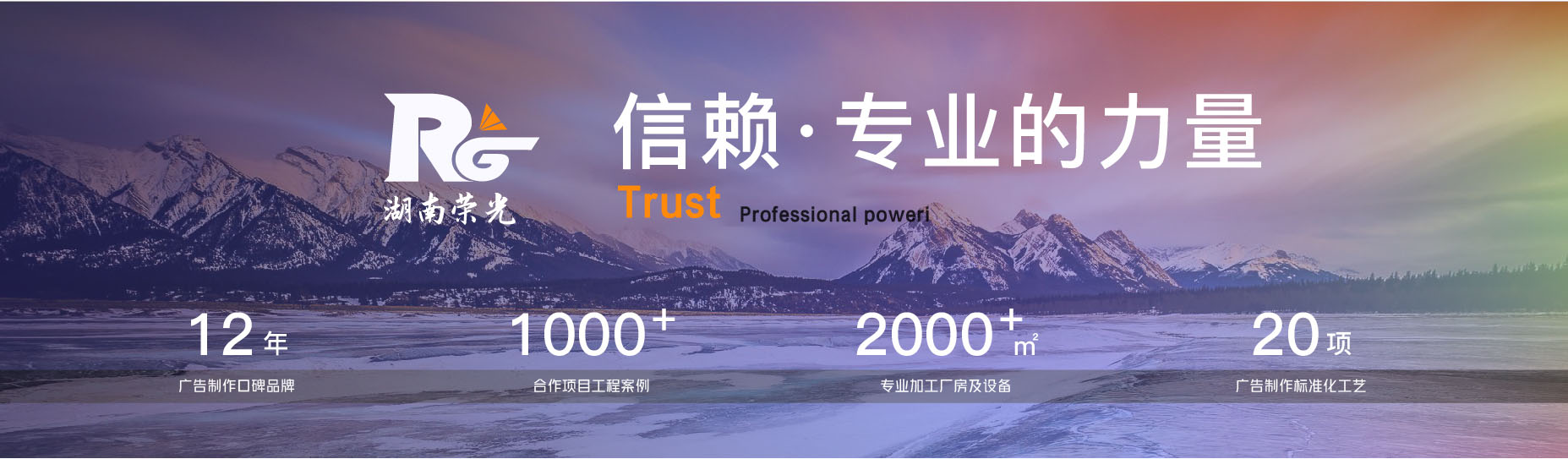 走進湖南榮光About Us湖南榮光公司是一家總部位于長沙的廣告公司,公司現(xiàn)有管理團隊技術骨干20余人,擁有專業(yè)的安裝隊伍及售前售后團隊、資深的文化墻設計、黨建文化設計和廣告標識設計團隊。現(xiàn)有廣告標識及發(fā)光字加工生產廠房2200平米,150平米標準化烤漆加工房。全自動發(fā)光字折彎機、雕刻機、激光切割機、平板UV設備等十余臺。同時具有強大的LED顯示屏供應鏈、為您企業(yè)的廣告投入,實現(xiàn)創(chuàng)新和快速反應,提供了有力保障。